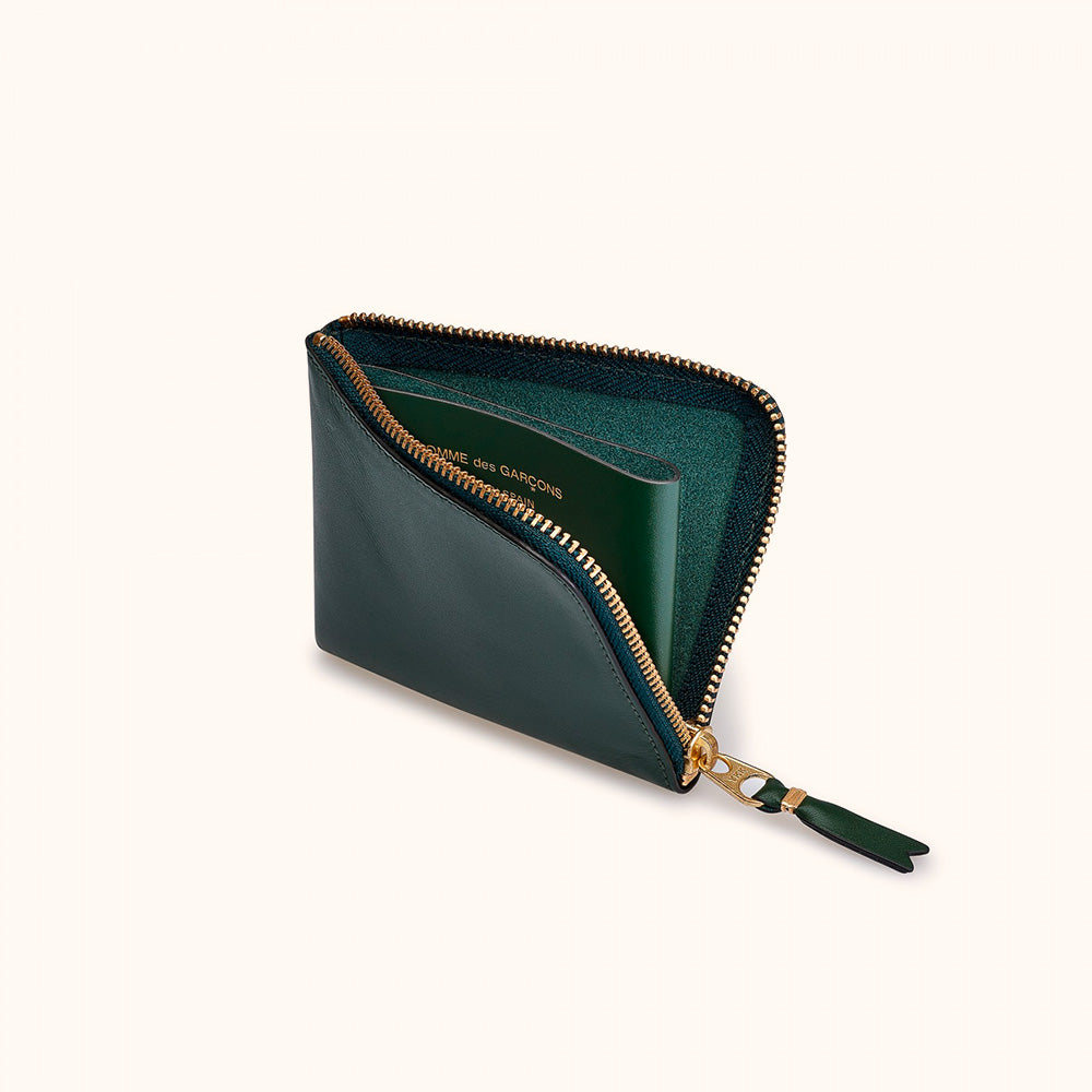 This wallet is a slick and sophisticated way to carry your money. It's made from cowhide leather and features a gold-tone zipper and a handy pouch pocket for your cash and cards.