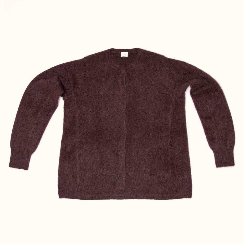RACCOON ROUND NECK CARDIGAN - BURGANDY