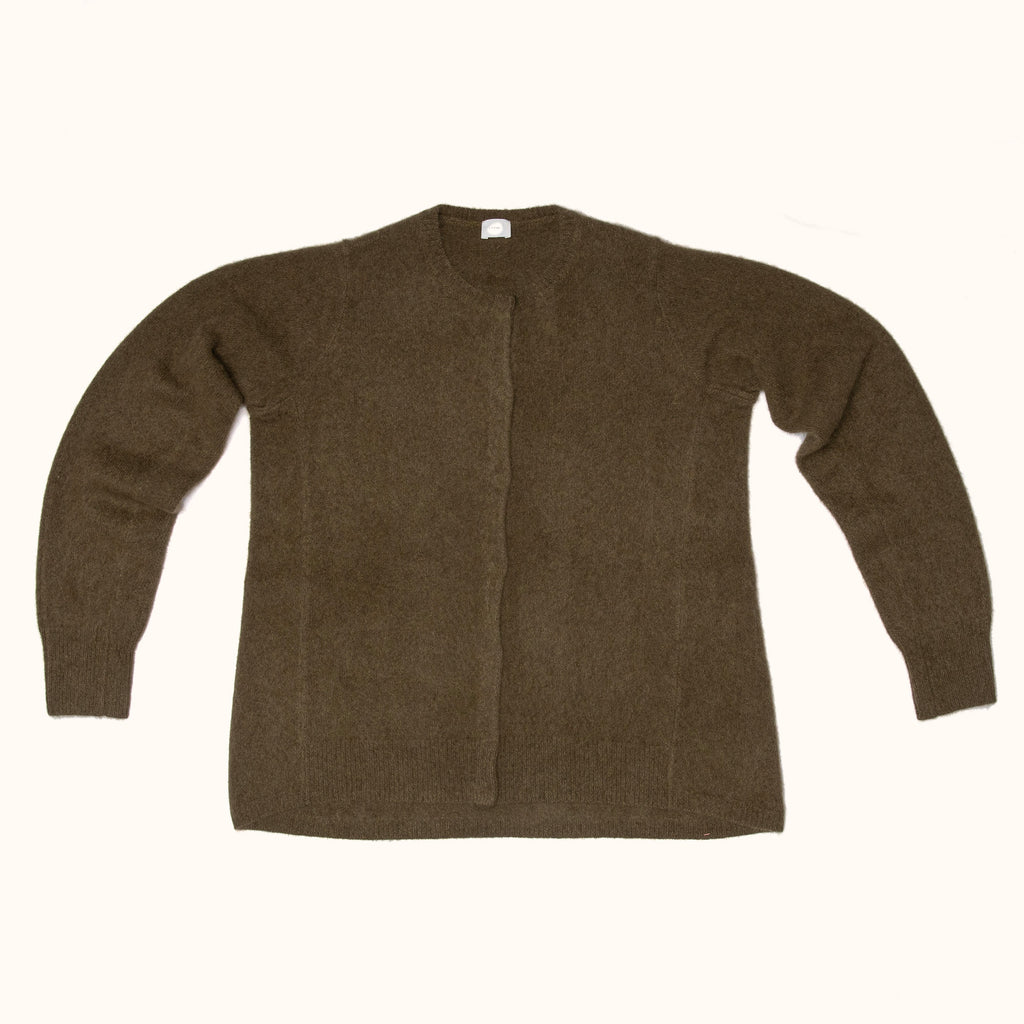 RACCOON ROUND NECK CARDIGAN - OLIVE