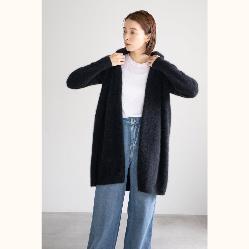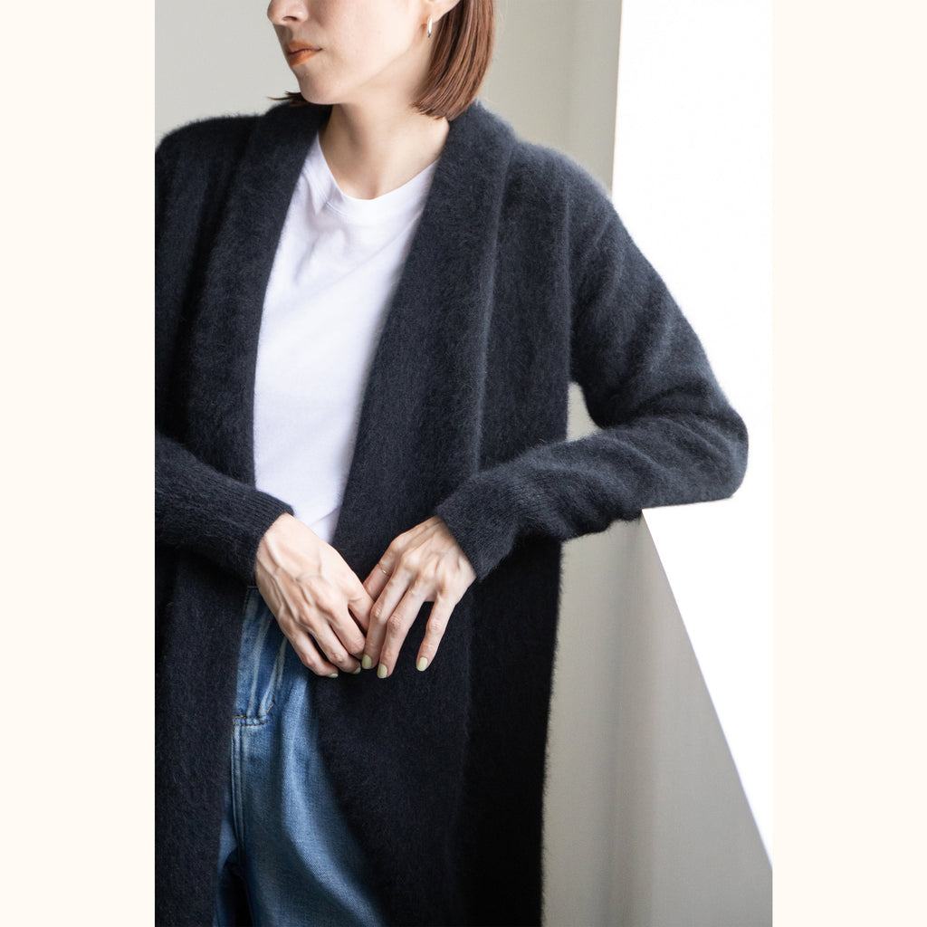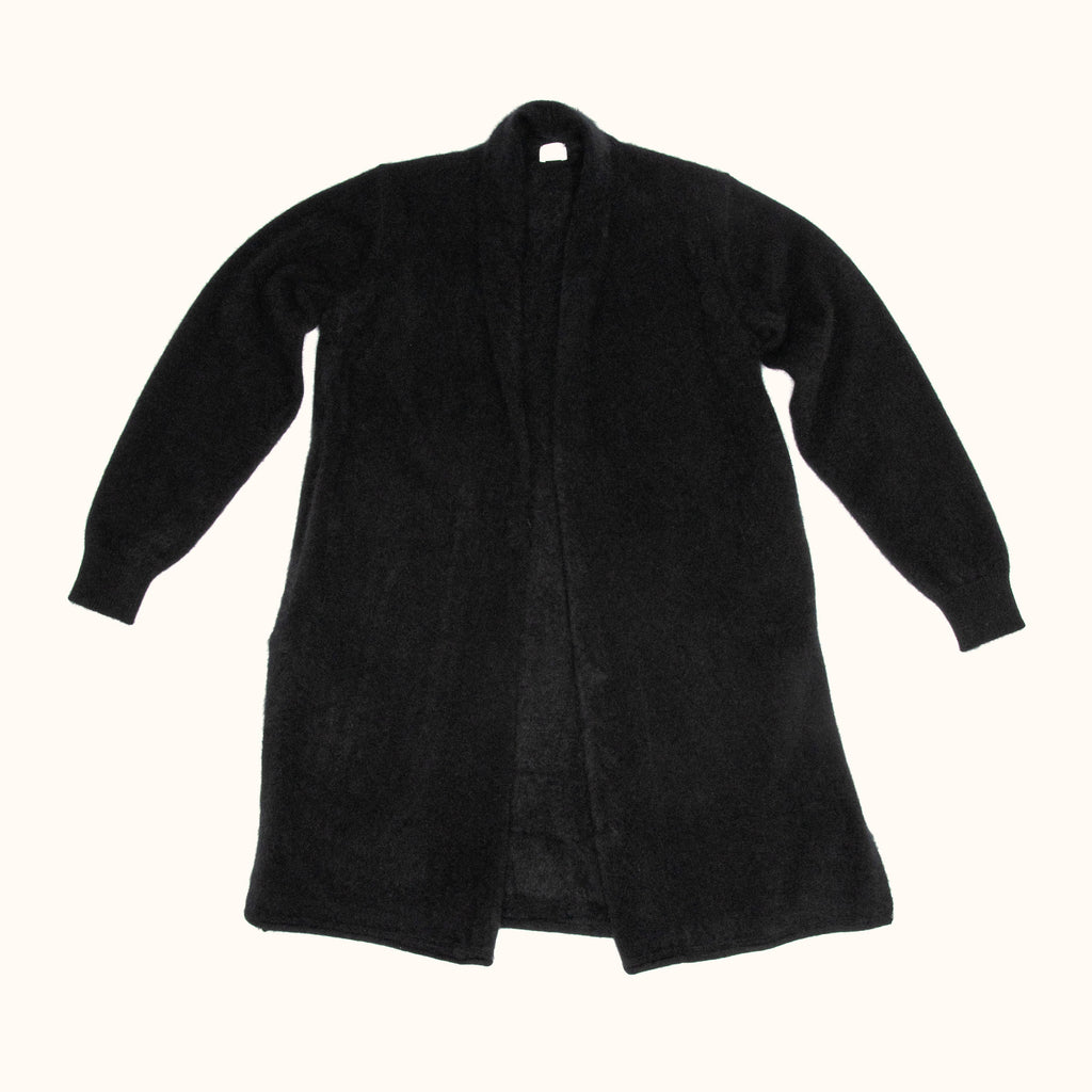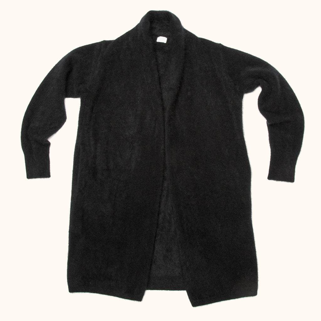 RACCOON WOOL LONG CARDIGAN - BLACK