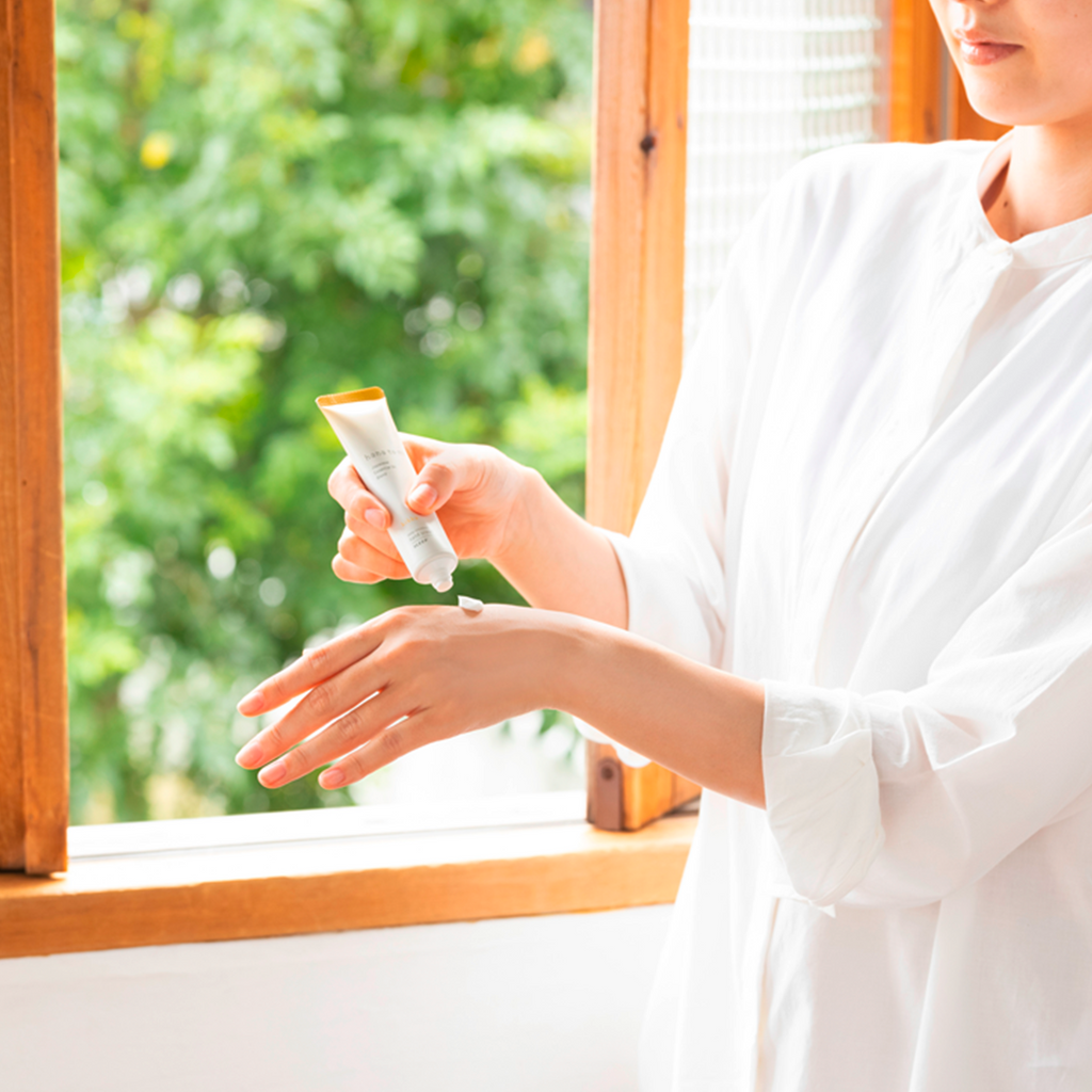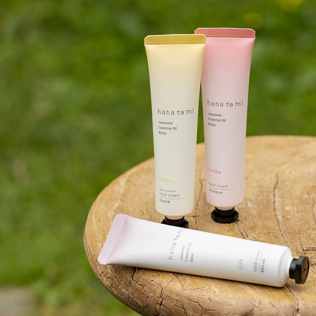Hand cream made with 100% natural essential oils. Sleep (yuzu) hand cream provides high moisutrization while promoting good sleep.  A fruity citrus scent inspired by Autumn.
