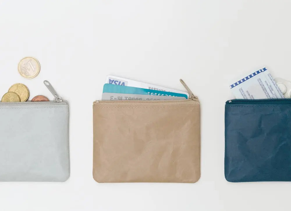 A minimalistic wallet. It looks like a coin case, but the width is the size of a credit card. It's a great wallet for those who want to keep their wallet relations to a minimum by storing credit cards, transportation cards, and even minimal coins and banknotes.