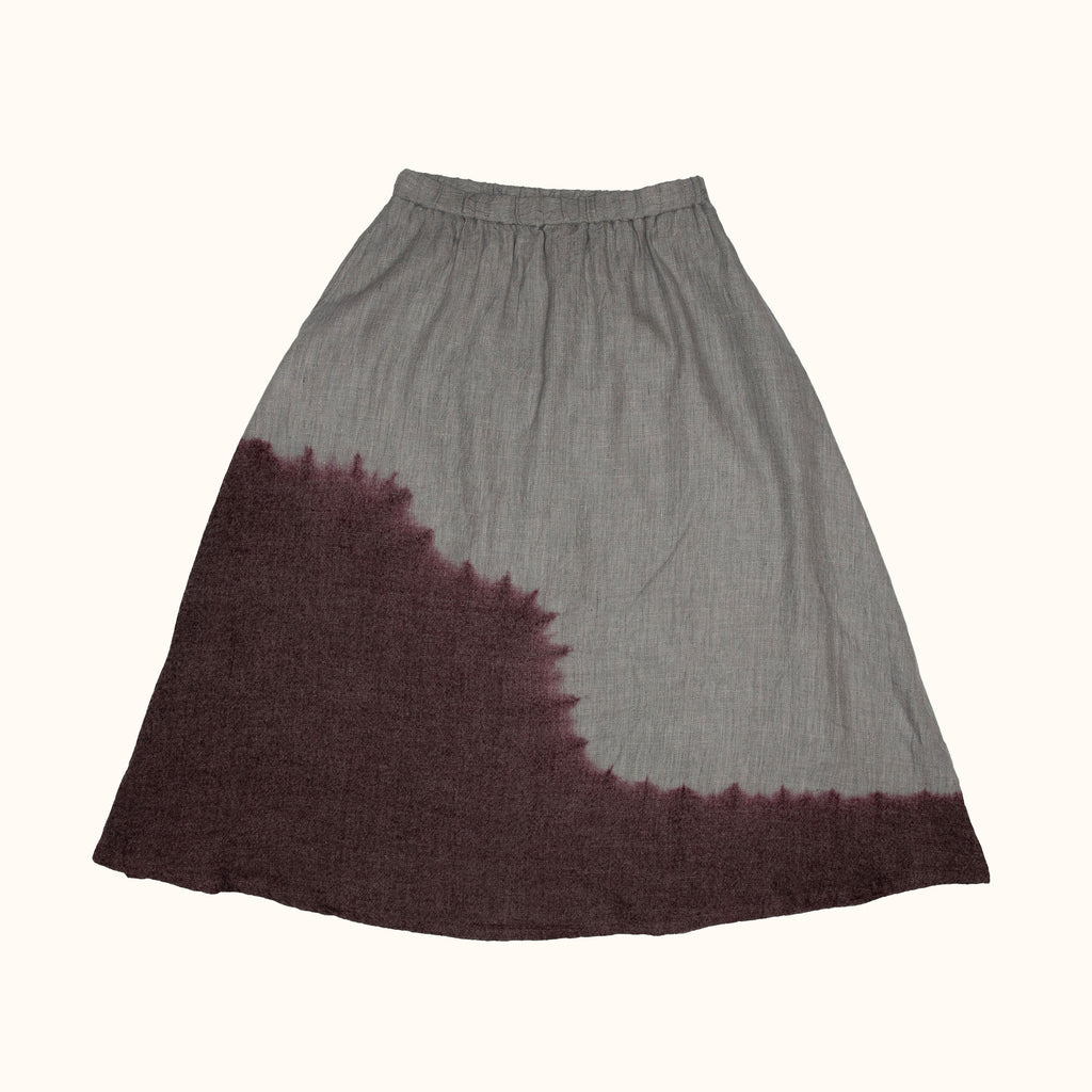 Linen Wool Twill Flare Skirt - Burgundy