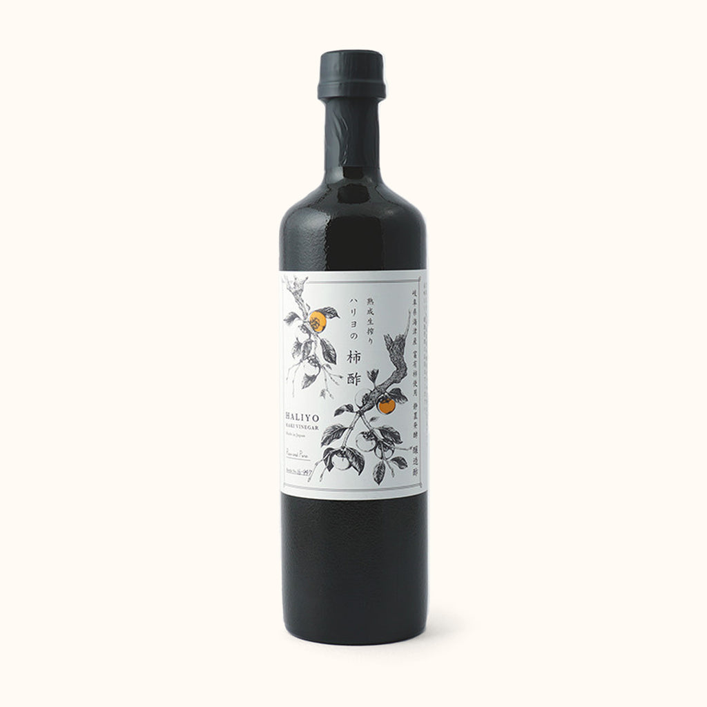 A brown, aged vinegar that has fermented and matured for over two years. Because no heat was used during the manufacturing process the vinegar contains live enzymes. The fresh sweet aroma of kakis is similar to that of fruit wine. Due to its long aging period, this kaki vinegar is characterized by a mellow acidity and a deep flavor with a long aftertaste.