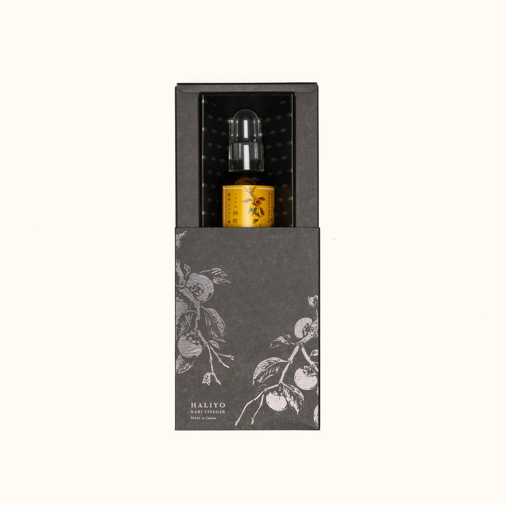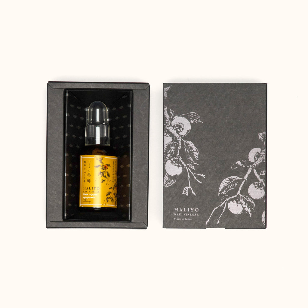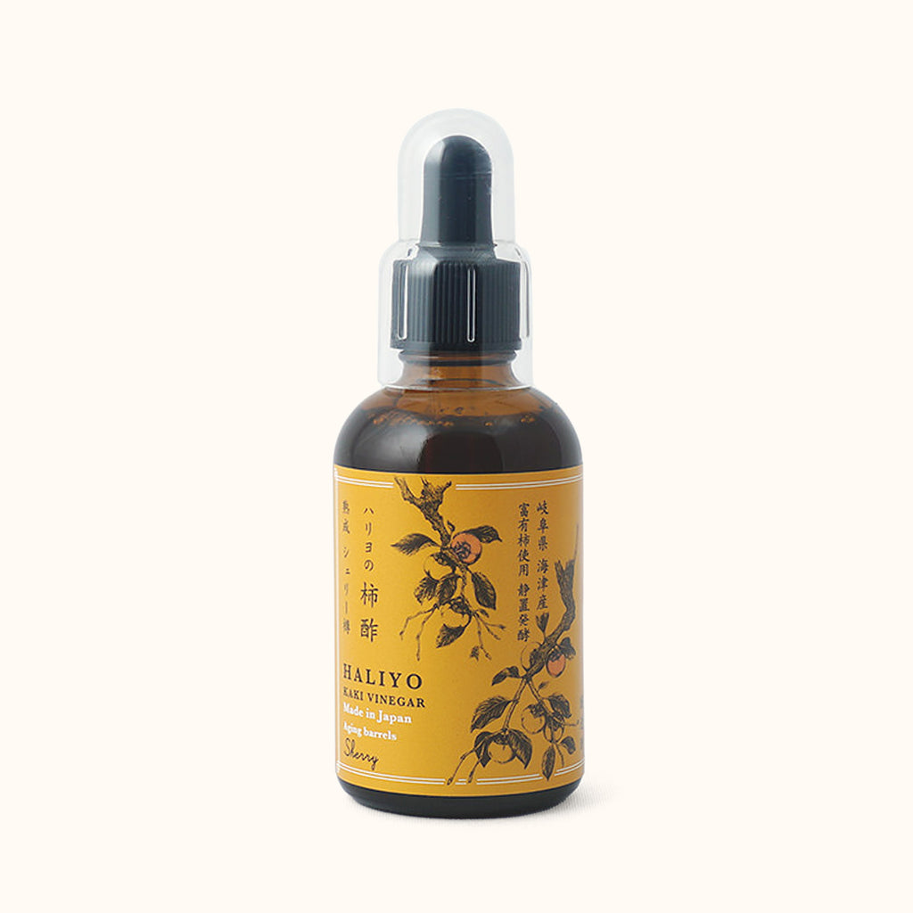 A kaki vinegar that has ripened and fermented in barrels formerly used in sherry production by a brewery in the Jerez, Andalusia in southern Spain. In this variety of HALIYO products, the slight citrus-like aroma of sherry is in balance with the fragrance of kaki vinegar.