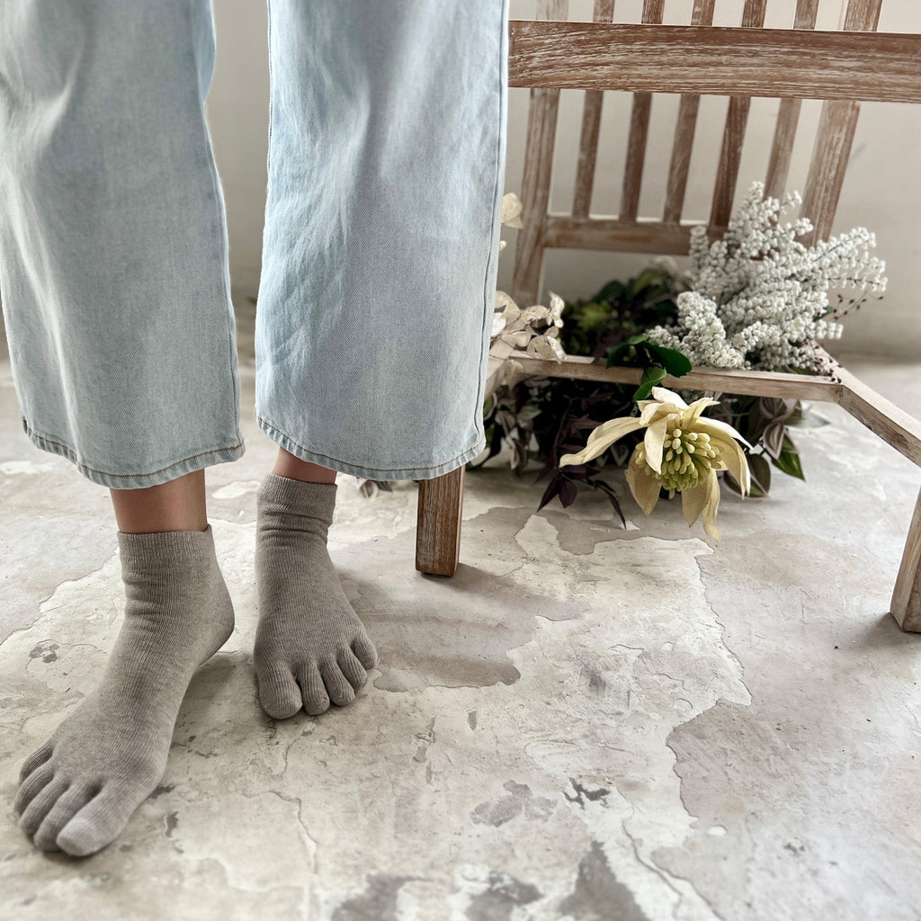 Organic cotton, produced without any pesticides or chemical fertilizers and safe botanical dyes extracted from natural plants, make these socks an all-natural product. These five-finger socks are carefully knitted. They feel great, indoors and outdoors. These five-finger socks absorb excess sweat and reduce the unpleasant feeling of stuffiness, keeping your feet comfortable all day long.